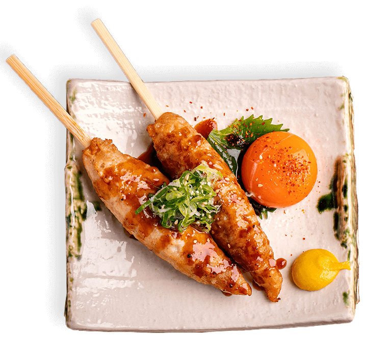 弾力のある歯ごたえが自慢のみやざき地鶏のももと、やわらかな肉質の霧島鶏のももに、軟骨とせせりをミックスした豪華な一皿。炭火に油を注いでスモークしながら、鮮度抜群の4種のお肉をほんのりレアに焼き上げ、特製のブレンド塩でシンプルに味付けしています。備長炭の香りと噛むほどに溢れるジューシーな旨味をお楽しみください。